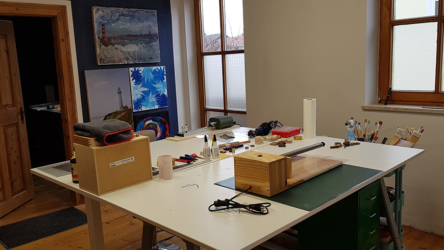 Seither arbeite ich an meinem Techniken mit heißem Wachs in meinem Atelier in der Schulstraße in Obing. Noch immer bin ich begeistert wie am ersten Tag. Noch immer bin ich fasziniert von den Farbverläufen des heißen Wachses. Bin jeden Tag neugierig auf neue Techniken und experimentiere mit Enthusiasmus und Liebe.